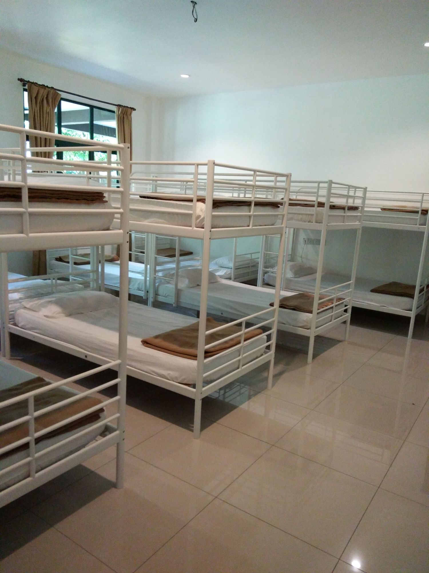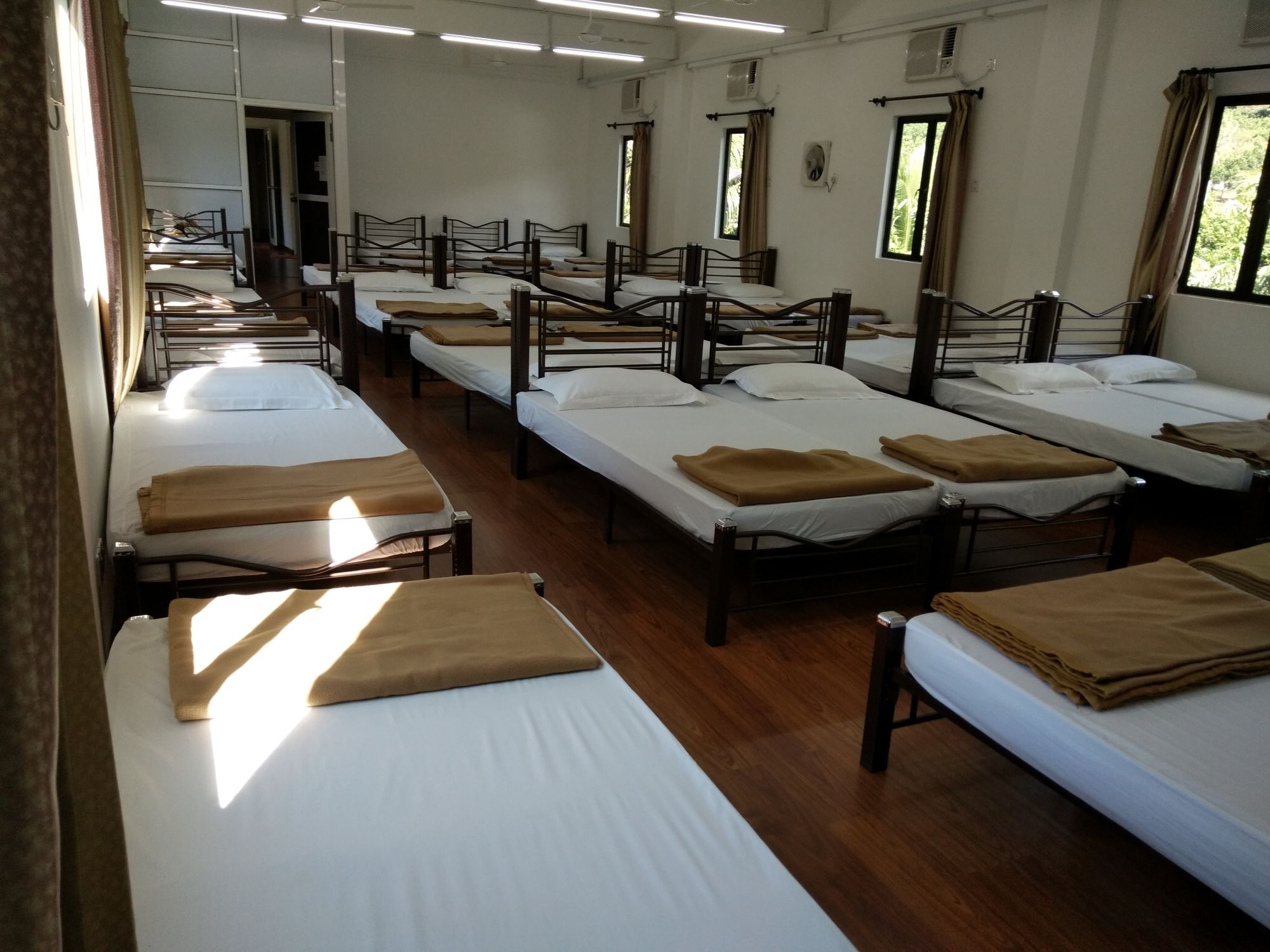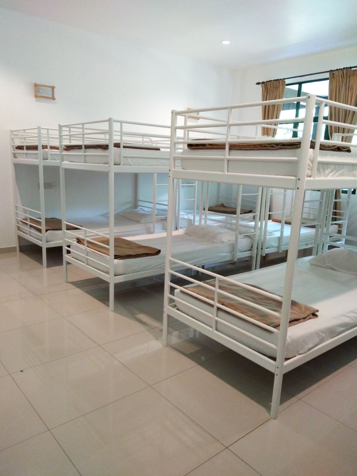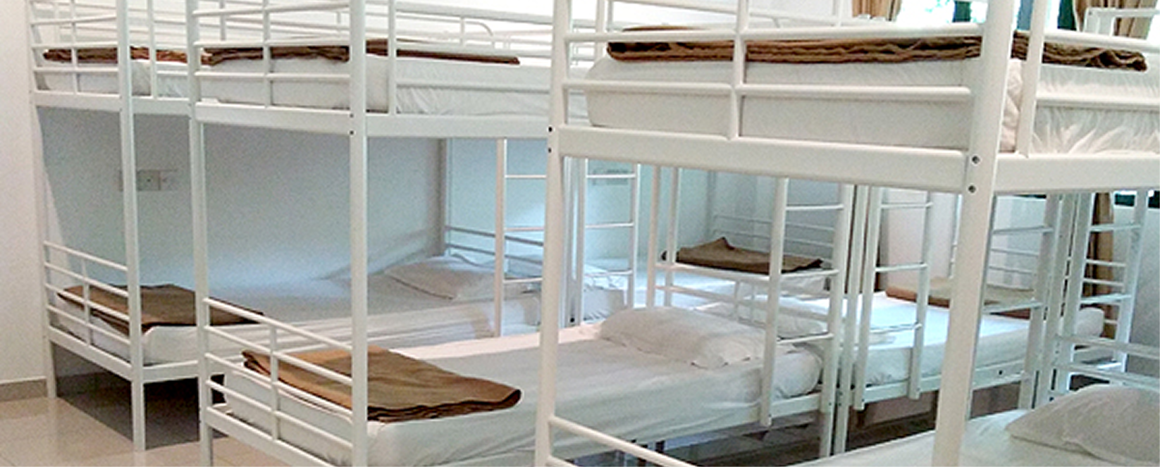 The Dormitory Room is designed for group stays, offering a shared yet comfortable setup. It includes multiple single or double-decker beds, shared bathroom facilities, and air conditioning. The bright and tidy design provides a convenient and relaxed space for group travelers or students.